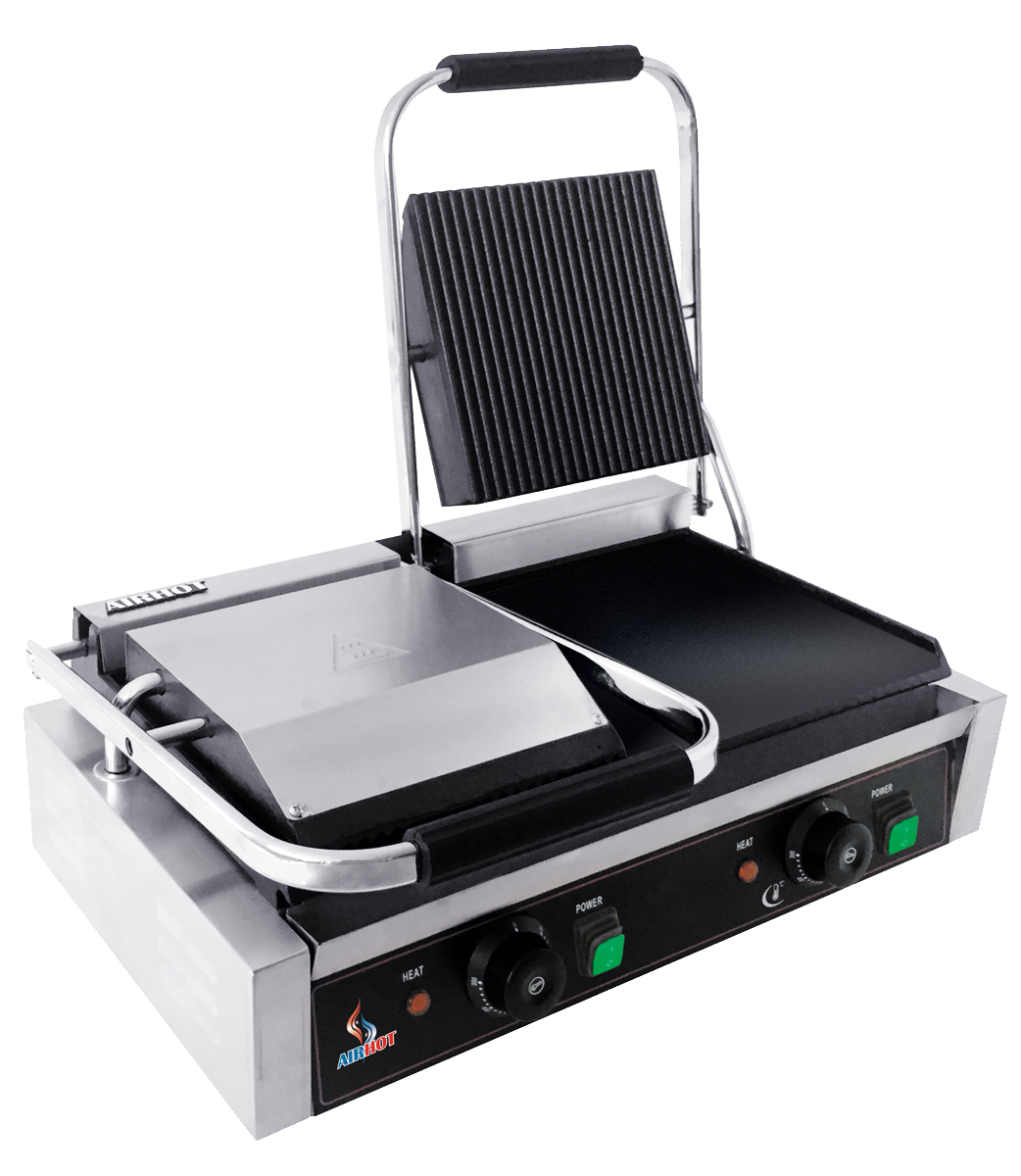 Грили роликовые двойные AIRHOT DCG-FG - основа уличного фаст фуд оборудования, идеальны для ресторанов, гриль-баров, предприятий общественного питания. Справляются с поджариванием овощей, мяса, рыбы, приготовления стейков, гамбургеров и горячих сэндвичей.